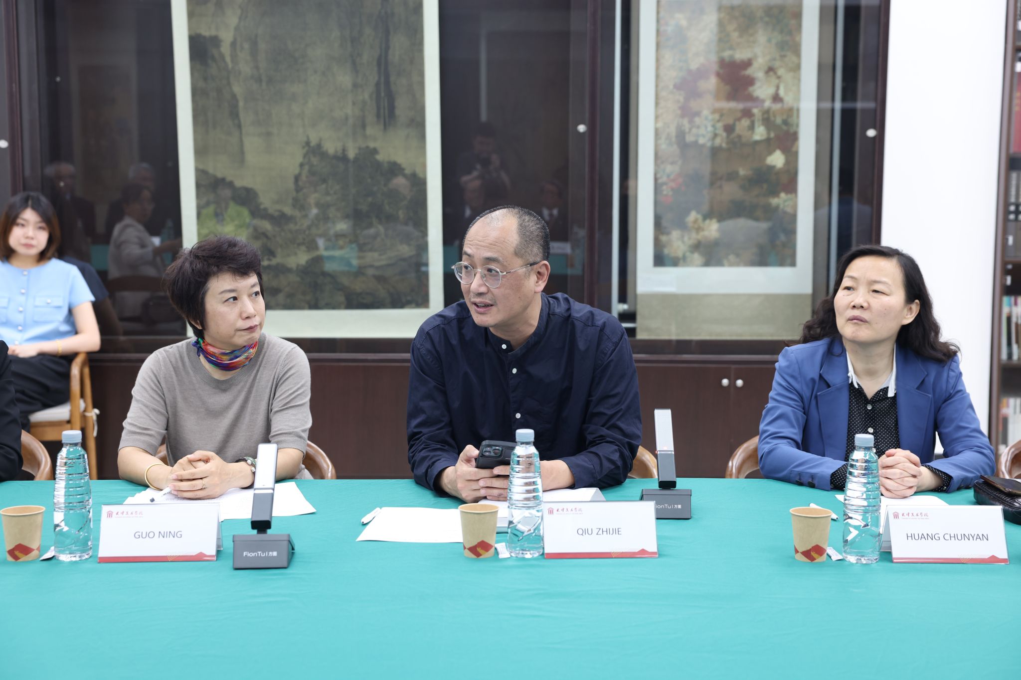 学校党委副书记、院长邱志杰教授代表天津美术学院热情接待了来访嘉宾。日方代表团由日本书法院理事长星弘道、全日本书法联盟副理事长辻元洋一、日中文化交流协会专务理事中野晓、日本书法院副理事长山内香鹤、武藏野大学教育学部教授广濑裕之、日本书法院常任理事小林千早共6位书法界艺术家及学者组成;韩方代表团包括韩国书法协会会长金荣基、国际书法家协会会长郑道准、国际书法家协会副会长郑雄杓、国际书法协会事务次长孙昌洛、PHILMUK公司代表金钟键、韩国篆刻协会会长崔载锡、韩日文化交流会议职员朴俞真共7位书法界艺术家及知名人士组成。全国对外友协东亚部二级巡视员郭宁、天津市对外友协副会长黄春艳等陪同访问,我校国际交流处、中国画学院、津美融合创新研究院相关负责人出席会见。