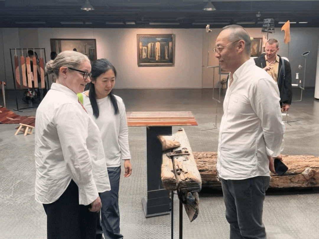 会前,来宾们参观了2025年学校毕业展,造型艺术学院副院长谭勋、中国画学院副院长赵栗晖进行了现场导览,对参展艺术作品进行详细介绍。代表团与参展学生进行了友好且热烈的交流互动。