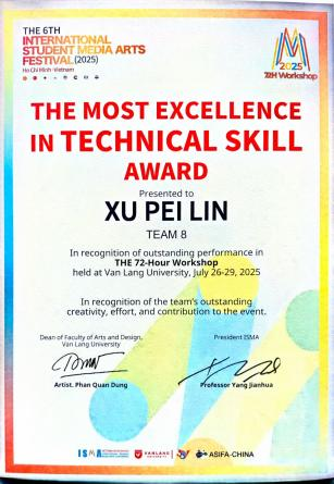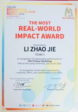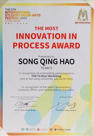7月25日至29日,在越南胡志明市范朗大学举办的第六届国际学生媒体艺术节(ISMA)中,我校实验艺术学院硕士生李召杰、郝帅炜、宋庆昊、许佩霖在工作坊创作中荣获3个奖项。