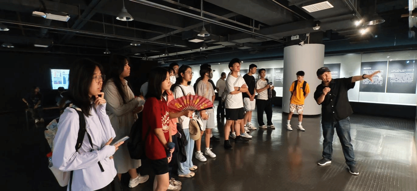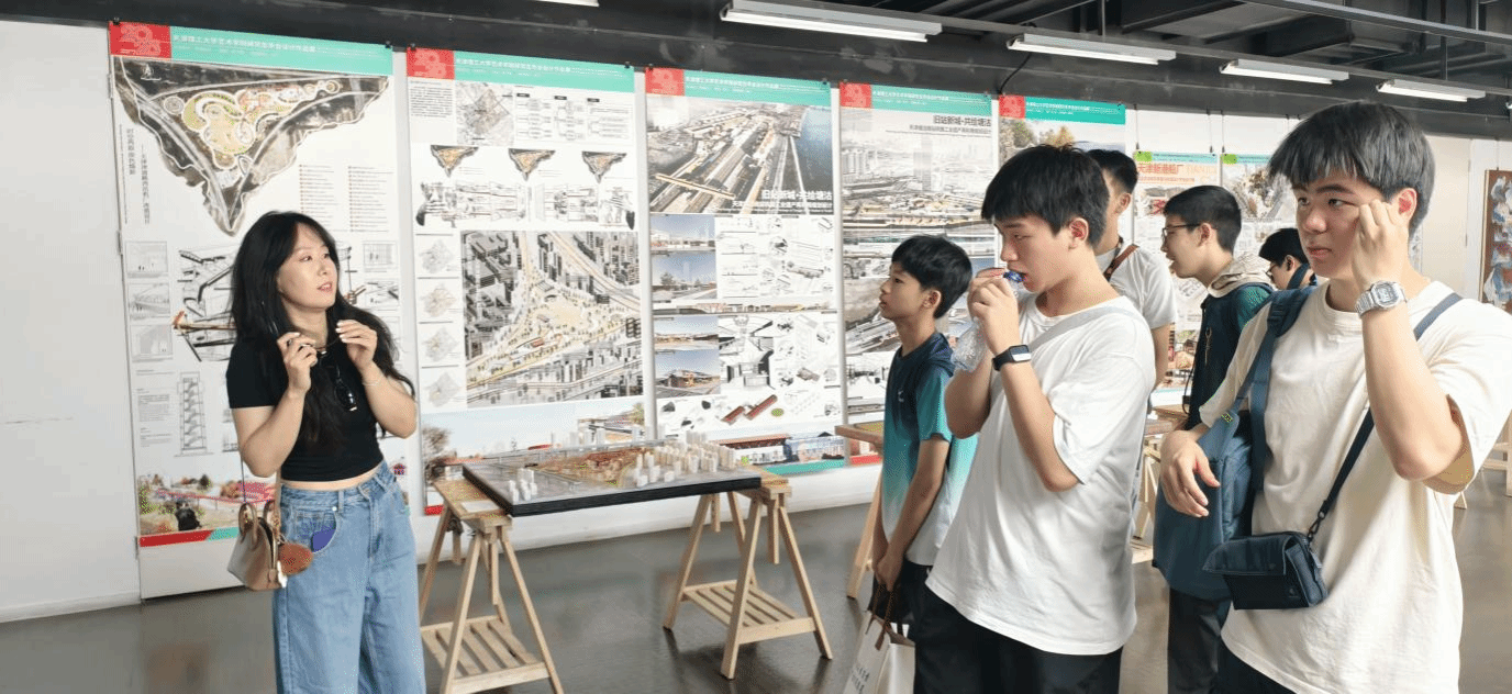 随后,学生们参观了《海河青年艺术季・天津市高校青年设计作品展》,设计艺术学院青年教师,视觉传达设计系副主任刘晓初进行导览。刘老师带领大家观看了来自天津市各高校青年设计师们的作品,为同学们详细介绍了我校视觉传达设计、产品设计、工艺美术等专业的情况。徜徉在形式纷呈的艺术作品中,同学们不仅感受到内地新生代青年设计师们的锐意创新,更通过作品触摸到天津这座城市的勃勃生机以及多元、包容、厚重的文化风貌。