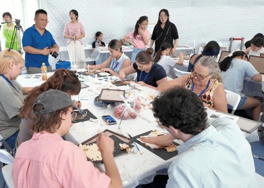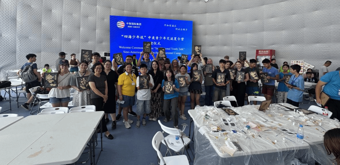为促进中美青少年人文交流,增进两国人民相互了解与友谊,2025年7月7日,来自美国23个州的美国青少年及中国小使者团组一行200人走进天津市宁河区,一场名为“四海少年说”中美青少年文化交流夏令营这里成功举办。宁河区区委常委、统战部部长王智东、中智国际董事长苑婷、天津大学国际教育学院院长李锵、天津美术学院国际交流处处长沈岩及美方中方教育代表出席活动。我校设计艺术学院、美术教育学院组成教师团队,为中外学生进行了非遗文化体验教学活动。