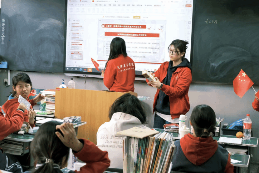 在宣讲现场,青马学员化身“理论诠释者”和“艺术引导者”。她们从艺术创作与国家发展的共通点切入,将“制度优势”“文化强国”等关键词与构图法则、色彩关系、创作理念巧妙关联,通过案例分享国家在文化保护、艺术创新、美育普及等方面的成果,并结合中外艺术史经典,阐释新时代艺术工作者的使命与担当。