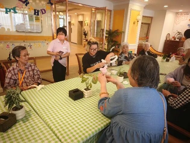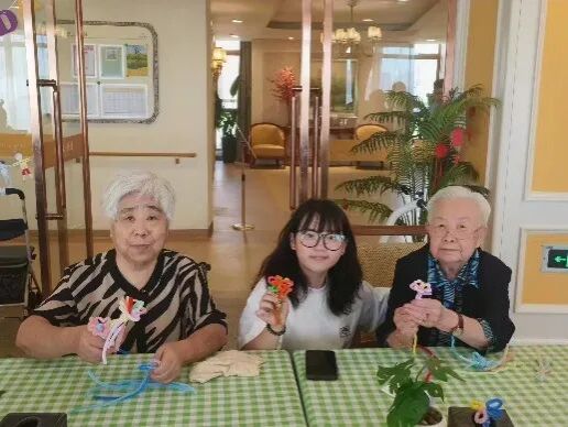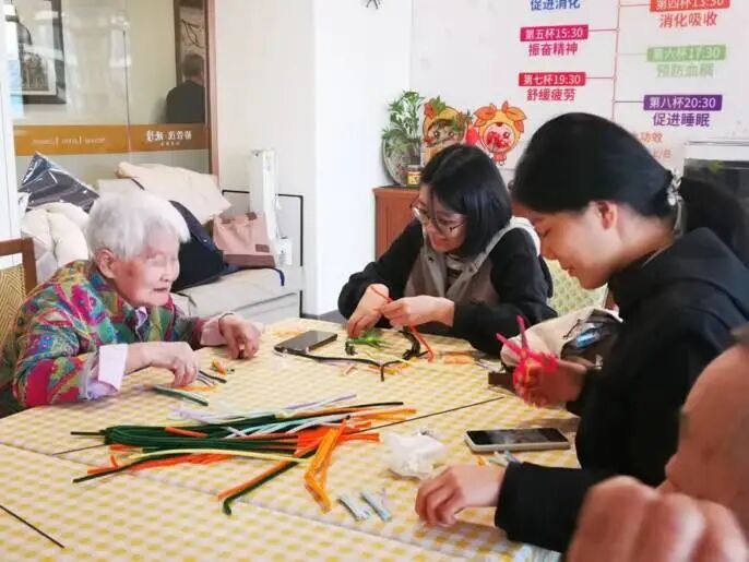 而在另一场活动中,志愿者们带领老人们用扭扭棒制作小雏菊、百合与小狗。从基础的扭转到成型的塑造,志愿者们一对一陪伴,爷爷奶奶们专注而认真。一件件稚拙却充满生命力的作品在他们手中诞生,笑容如秋阳般灿烂。
