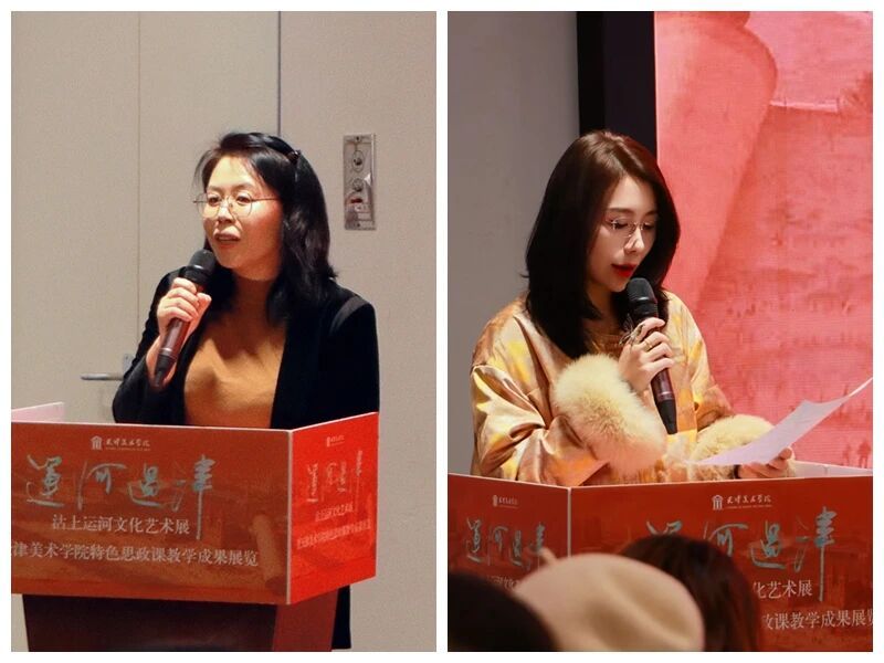天津美术学院党委副书记、院长邱志杰,市纪委监委驻天津美术学院纪检监察组组长李永奎,市委宣传部文艺处处长刘宗锦,市教委学生处副处长满荣,和平区委宣传部副部长侯彦一,河北区委宣传部副部长崔国山,西青区委宣传部副部长张蕾,和平区教育局副局长冯耀忠,天津图书馆党委书记李冠龙等领导嘉宾,天津美术学院相关职能处室、二级学院负责人,运河城市思政一体化联合体代表(北京物资学院)、全市十余所高校马克思主义学院负责人、中小学师生代表及运河历史文化专家共同见证这场文化与思政交融的艺术盛会。开幕式由天津美术学院党委学工部部长、校团委书记史雅宁主持。