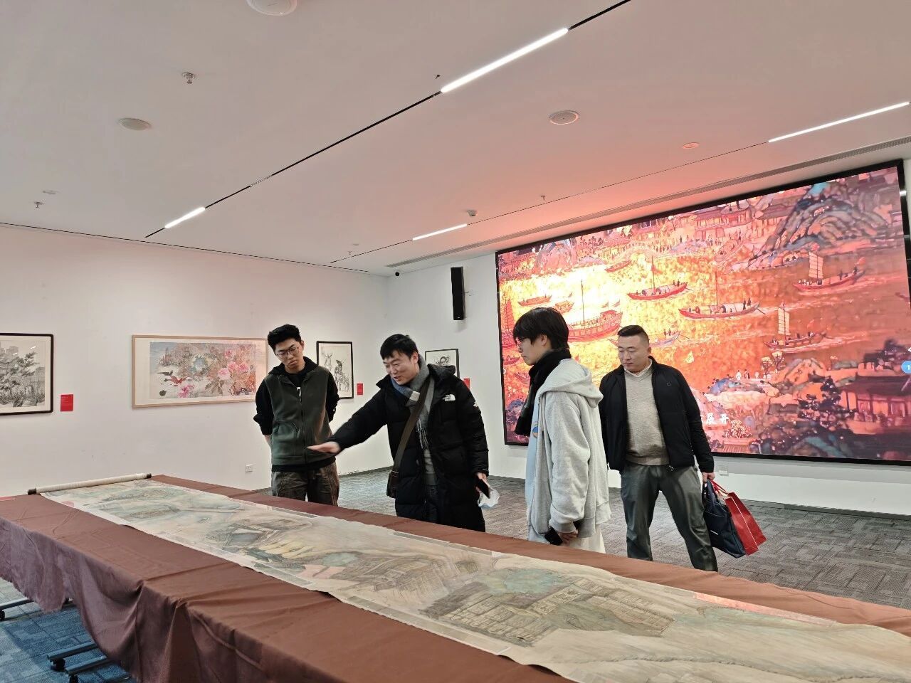 策展人、天津美术学院教师李超详细介绍了展览筹备历程与核心内容。本次展览自9月启动以来,得到全市十余所高校及中小学的积极响应,共征集到数百件涵盖中国画、摄影、书法、版画、设计与文创产品、科技美术等多元媒介的作品,经专家评审遴选出 70 余件优秀作品展览。展览以“漕运胜景与现代图景”为叙事脉络,通过“生态之美”“文脉传承”“航运转型”“运河润城”四大主题,用多元艺术语言再现三岔河口漕运盛景、展现运河生态新貌、诠释城水相依的民生烟火,让尘封的历史符号在创意中“活起来”。