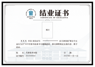 结业证书加盖天津美术学院公章及钢印,证书样式如下:
