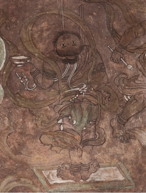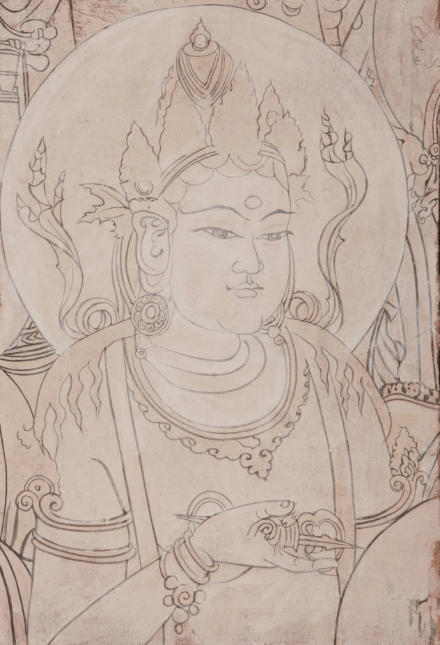 《五个庙石窟3窟正壁》(局部) 板面亚麻布底泥胚壁画
