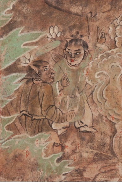 《五个庙石窟3窟右壁》(局部) 板面亚麻布底泥坯壁画