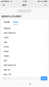 我校“百事通系统”已经部署完毕,现上线运行。该系统旨在帮助大家在线回答一些在校学习生活的问题,我们将称之为“智能伯牙”,即在线答疑机器人。